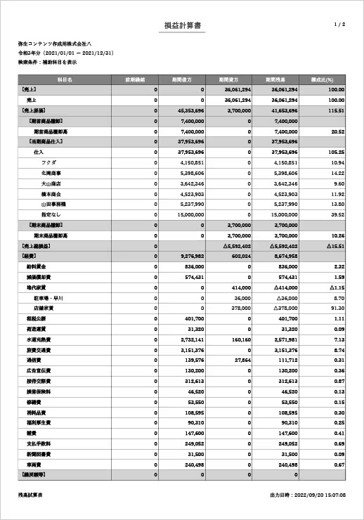 • 残高試算表・決算書の自動作成