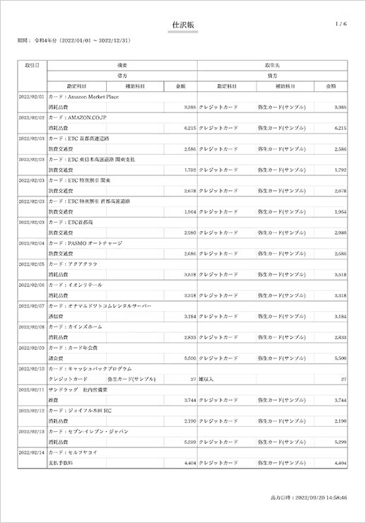 やよいの青色申告オンラインでは、「かんたん取引入力」「スマート取引取込」「アプリの取引取込」で登録した取引は、自動的に仕訳帳に集計され、総勘定元帳に転記が行われます。